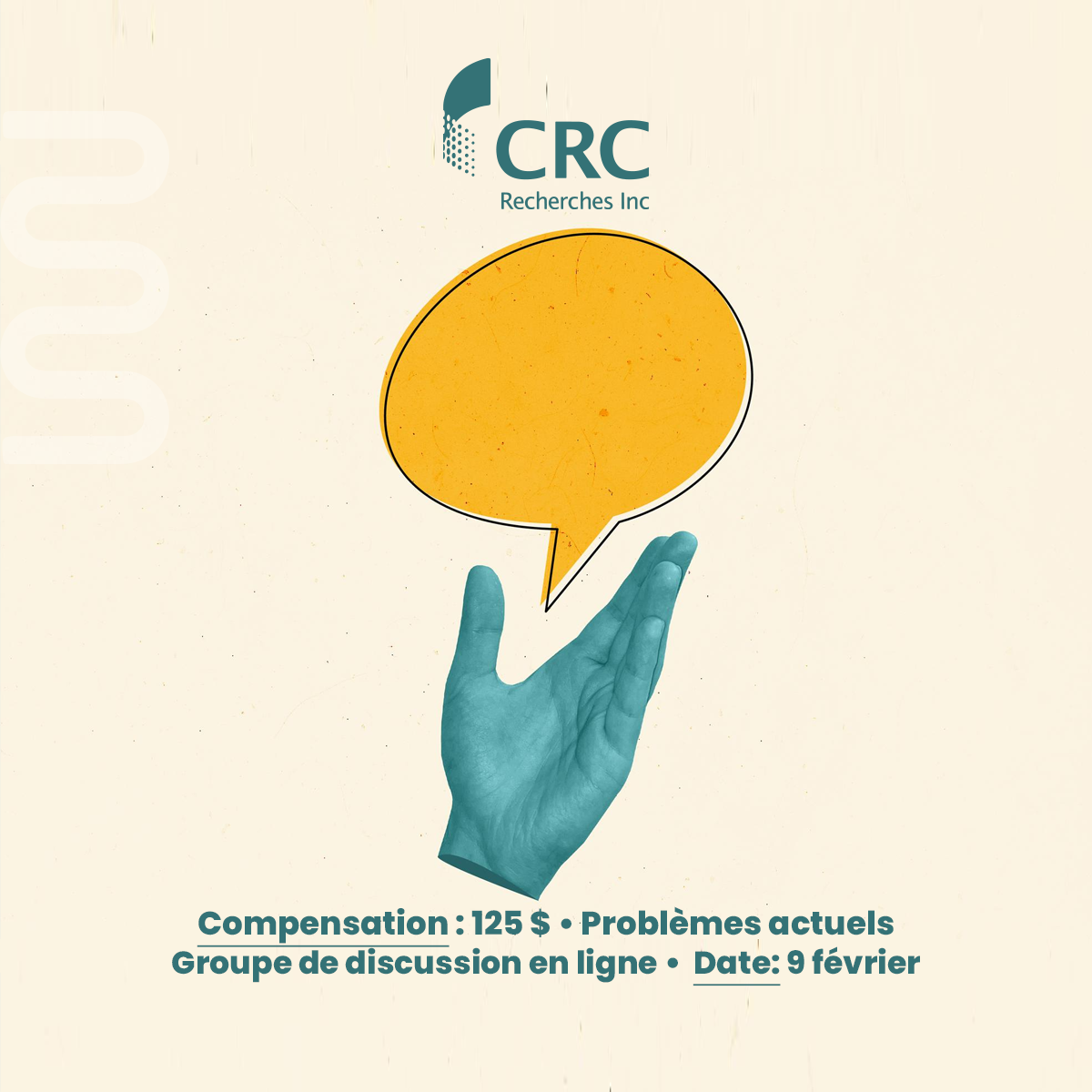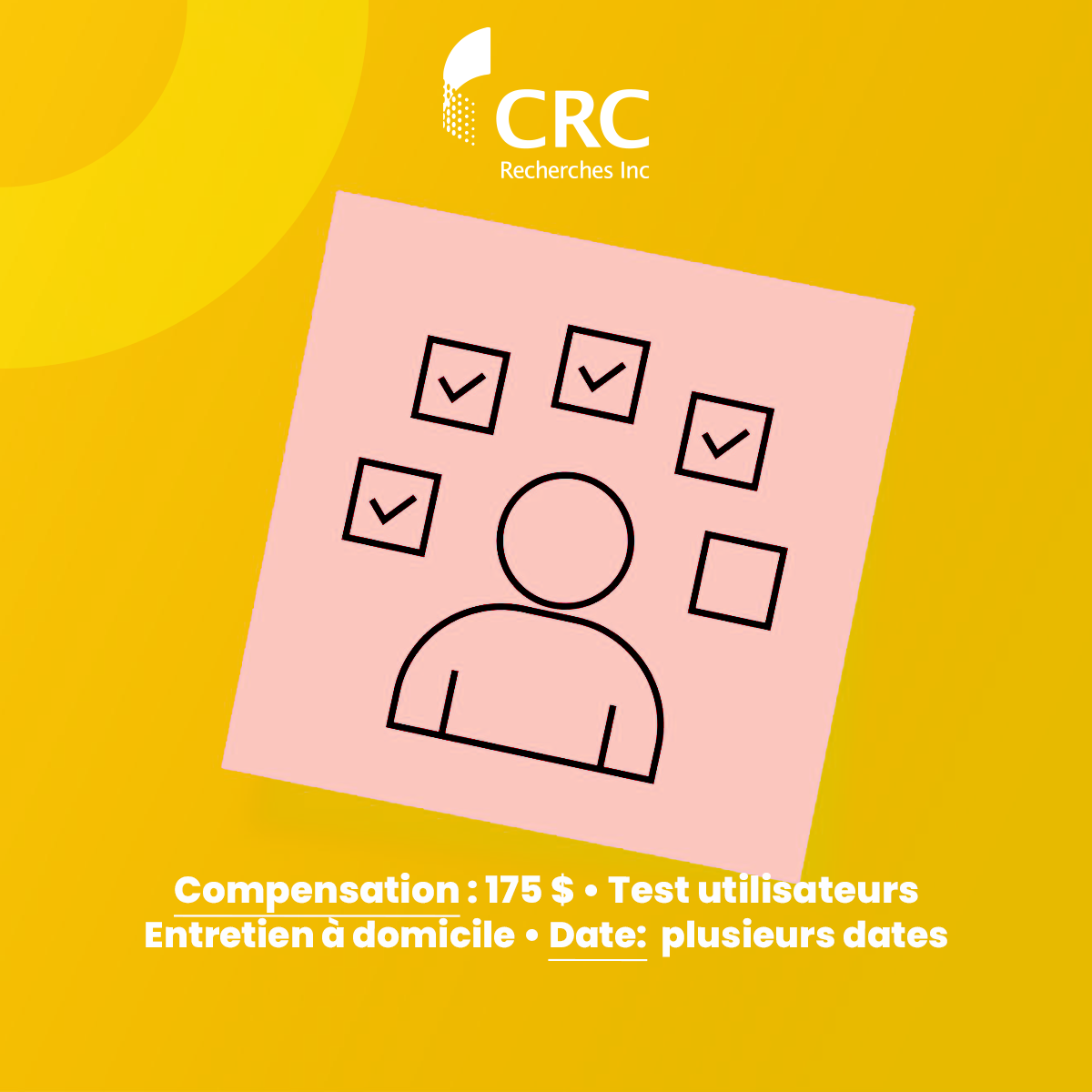 Pour devenir panéliste ou répondre aux sondages de CRC Recherches, il vous suffit de vous inscrire en cliquant sur ce lien.